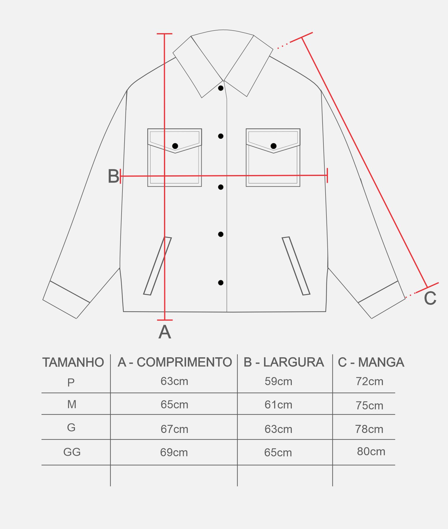 Tabela de medidas: